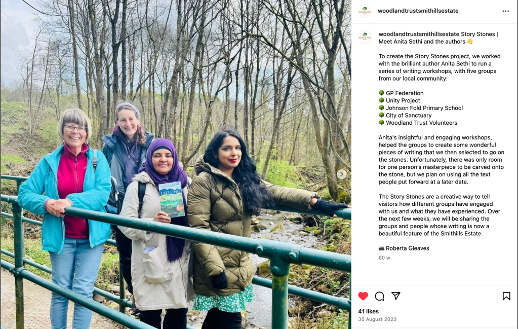 Initiatives include distributing free copies of I BELONG HERE to those who would not otherwise afford them, reaching marginalised groups who do not have as easy access to literature, as well as running writing workshops and walkshops. The I Belong Here initiative also partners with organisations to develop and work on projects to engage with underrepresented communities to address through practical measures inequalities in place and place writing to have a positive and meaningful impact on society and tackle social injustice.