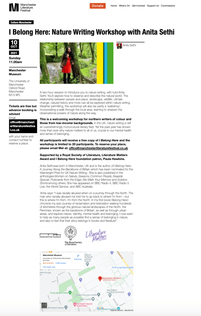Anita also runs writing workshops for other organisations around the UK and globally; for more info or to request a booking: anita@anitasethi.com